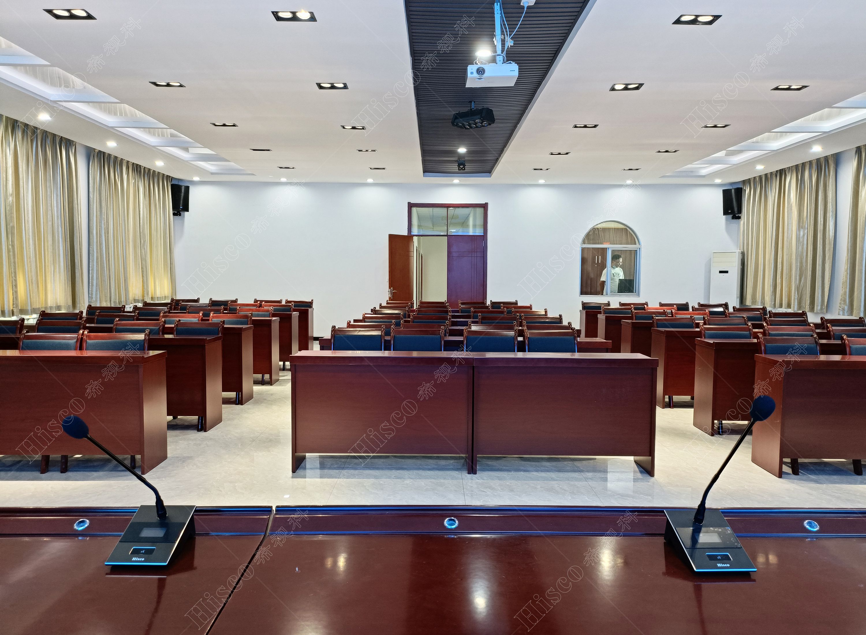 随着当今科技的飞速发展,老式的会议形式已无法适应现代化会议系统的要求。现代化的数字会议系统会议程序简单化、功能多样化,能够对会议实施控制、管理,包括声音传送稳定纯正,讨论清晰有序,使整个会议形式具有高效性。本次会议室设计采用数字会议系统,扩声系统、显示系统、集中控制系统、矩阵系统、无纸化升降等,实现会议室的多媒体会议功能,满足简洁流畅的会议过程、逼真传神的听觉效果、清晰舒适的视频显示、智能的摄像跟踪、媒体音视频信号源矩阵切换和中央集成控制等要求